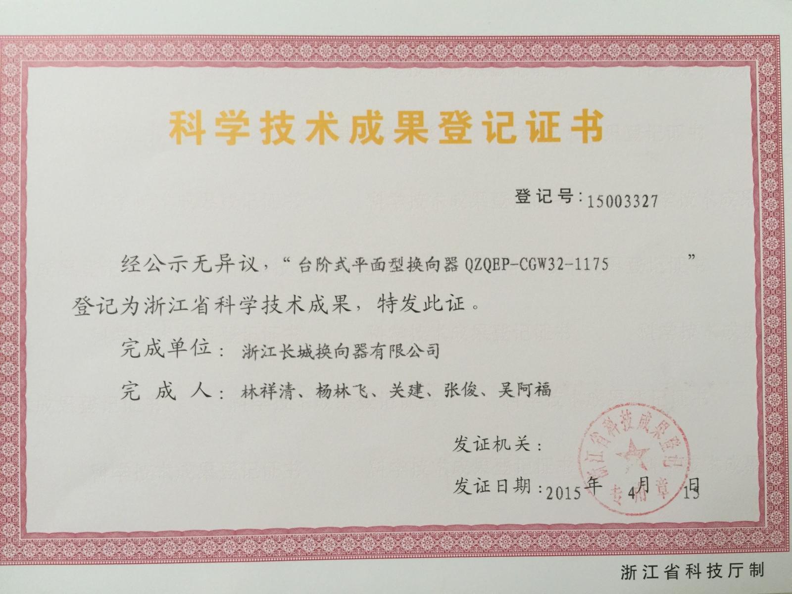 科学技术成果登记证书
