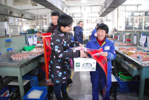 坚持以人为本,积极构建和谐企业,为员工排忧解难,解除员工的后顾之忧,使每位员工都能真切体会到公司的关爱,这是公司不变的宗旨。每年春节来临之际,公司领导始终把员工的冷暖挂在心间,抽出时间探望慰问,让他们感受到企业大家庭的温暖。同时今年东山街道与边防派出所也组织人员向困难员工送来了温暖。