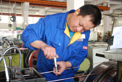 记者小笔记:去车间采访邓金华时,当时不在岗位上,我就找了同事打听了一下他的情况。同事眼中的他,是个做事十分认真,很有责任心的人。 每天铜材上料后,他做得第一件事就是校模,对首段拉拔出来的产品,进行测量,也就是首检工作。如发现尺寸偏差接近上限,虽然在拉拔工序上符合工艺要求的,但他还是一定要拿到后道工序去测试,确保后道工序加工出来的产品符合工艺要求,才放心生产。这样可能显得有点多此一举,但就是这样一个看似多余的举动,却避免了后道工序在工艺要求上的错误。一车间是公司生产系统的第一道口,如同一列火车的火车头,握准方向盘,控制行驶速度,才能安全顺畅的到达目的地。在见到邓金华后的采访中,他很朴实,他觉得每天坚持做,已经习惯了。他说,要把握好产品质量,没有其它窍门,就是认真地做好测量。一句简单的话,却是道出了质量控制最为实用的方法。