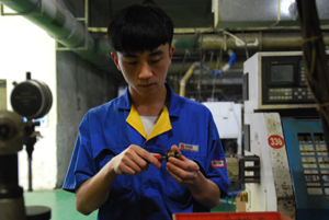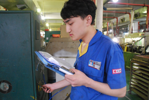 采访小笔记:采访这两名员工,有种好事多磨的感觉。一直在夜班碰不到,但又不想放弃,因为他们是此次质量之星中,唯一两位90后,看到以上人物的采访为止,很多人会说,他(她)们都是“元老级”员工,有这么多年的经验,质量自然做得好。因此对他们两人的采访,显得很有意义,所以特地等到夜班去采访。在车间看到这两位员工时,正巧他们正准备开工,边看他们做准备前的工作,边与他们聊天。设备点检,首检,他们每做一步,我会问他们为什么这样做,一步步有序地进行着。在采访过程中,我能感受到他们身上带着90后特有的腼腆,但对质量控制却有着各自清晰的认识。周晓强,他虽然二次进厂,但前后加起来也就2年时间,他说他也有过质量上的失误,那是在第一次进厂,铰孔工序最怕的就是孔的大小没控制好,当时以为前面测几个没问题就好了,之后没有再关注,后来出现了喇叭孔现象的批量废品。自那以后,他尽量做到每一个都测量。他说测量花进去的时间跟换来的好质量是成正比的。余同霖,才19岁的他,外表虽显稚嫩,但在谈到做产品时,却透露出90后少有的稳重。他说,当时都转正了,却连换把刀都还不会,总想找别人帮忙,但是有次找不到同事,去找线长帮忙换,反而被线长训骂了一顿。这一训也训醒了他,事事不能都指望别人。俗话说“工欲善其事,必先利其器”。关注设备、多测量产品,不要什么事都依赖别人,多学多做。这是他从此之后一直坚持的工作理念。