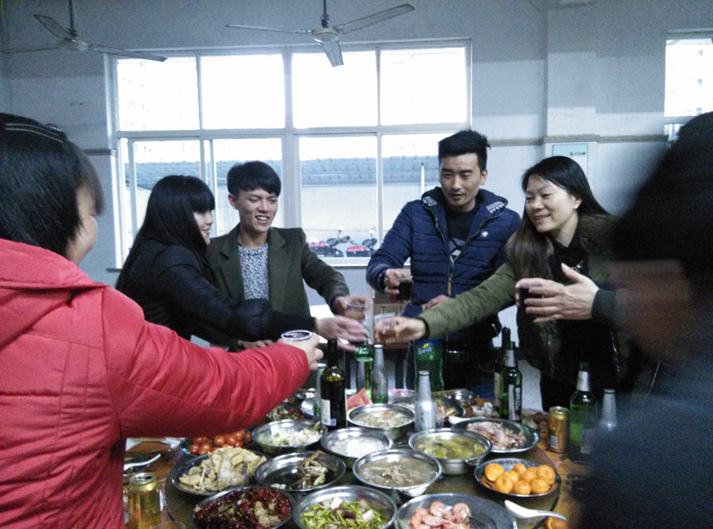 除夕夜下午五点半,公司食堂内喜气洋洋,年味十足,公司准备的丰盛年夜饭满屋飘香。在轻松愉快的气氛中,公司领导来到员工当中,与员工一起共进年夜饭,并与大家一起拉家常,聊一聊家长里短,说一说一年的事。陈凤仙与员工一一举杯祝福,向他们致以新春的祝福。香喷喷的年夜饭,拉近了公司领导与员工的心,香喷喷的年夜饭体现了公司对员工浓浓的关爱之情。在座的员工纷纷表示,虽然春节不能和家人团聚,但在这里感受到公司大家庭的温暖,受到很大的鼓舞。
