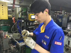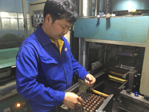 点评:压制员工是所有工序员工中最能吃苦耐劳的,曾尾发正是这其中一员。他坚信好的产品,是生产过程中每个环节每个员工用心测量,持续生产出来的。
