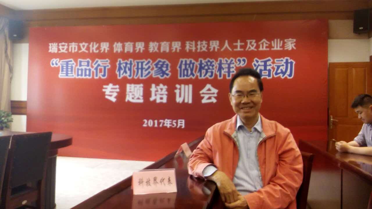 ,我市“重品行、树形象、做榜样”活动专题培训会在市政会议中心召开,我公司技术顾问林敏恩作为科技界代表之一参加培训。