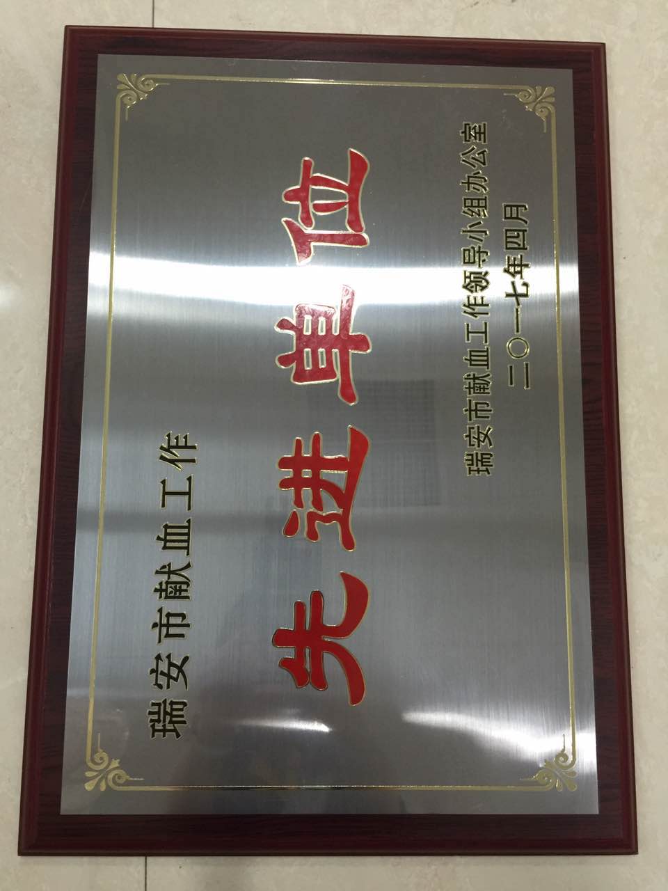 日前,我公司荣获瑞安市献血工作先进单位。