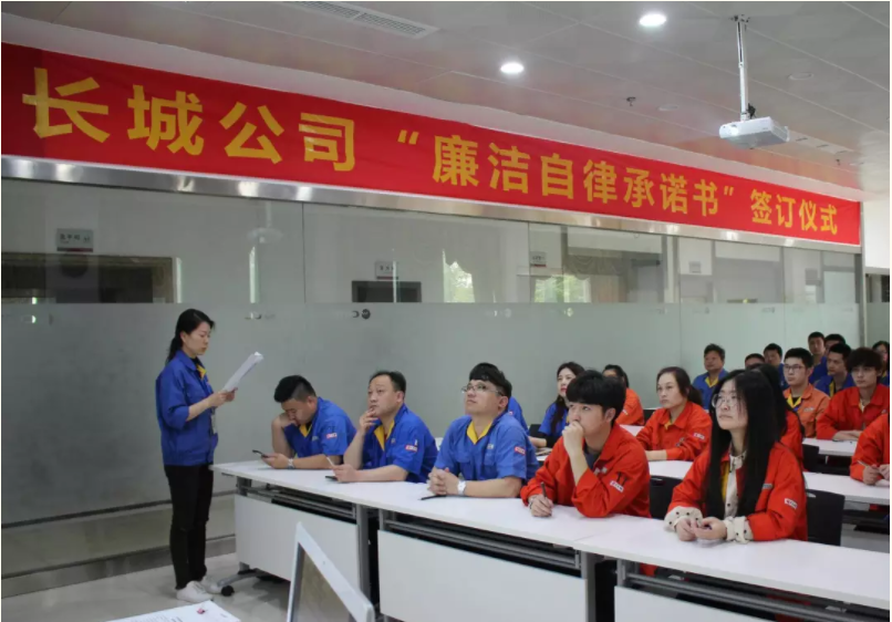 5月15日,长城公司在一楼会议室举办《廉洁自律承诺书》签订仪式,涉及人、财、物等关键岗位的工作人员现场签订了《廉洁自律承诺书》,进一步加强公司员工廉洁自律意识,从思想源头上杜绝违规违纪的事情发生。行政副总陈凤仙主持签订仪式并为大家详细解读了《廉洁自律承诺书》主要内容。