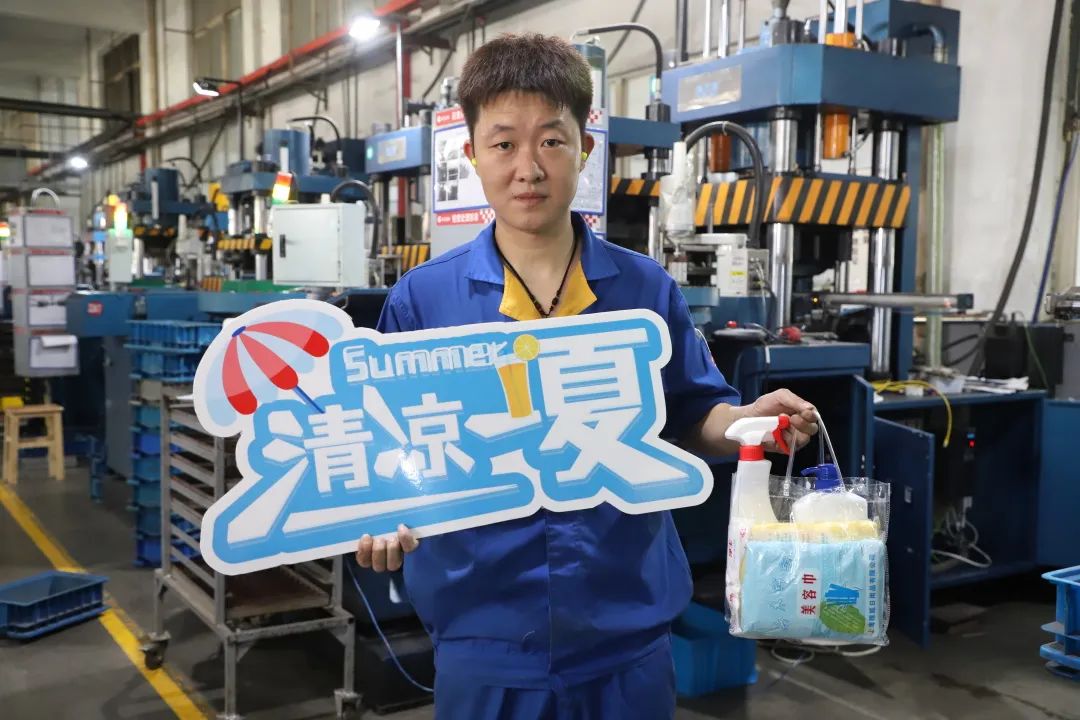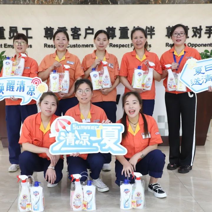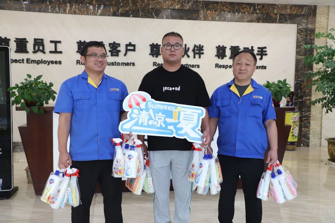 公司结合实际情况,为大家准备了清洁用品,并深入生产一线,把清凉和关怀送到一线职工手里。