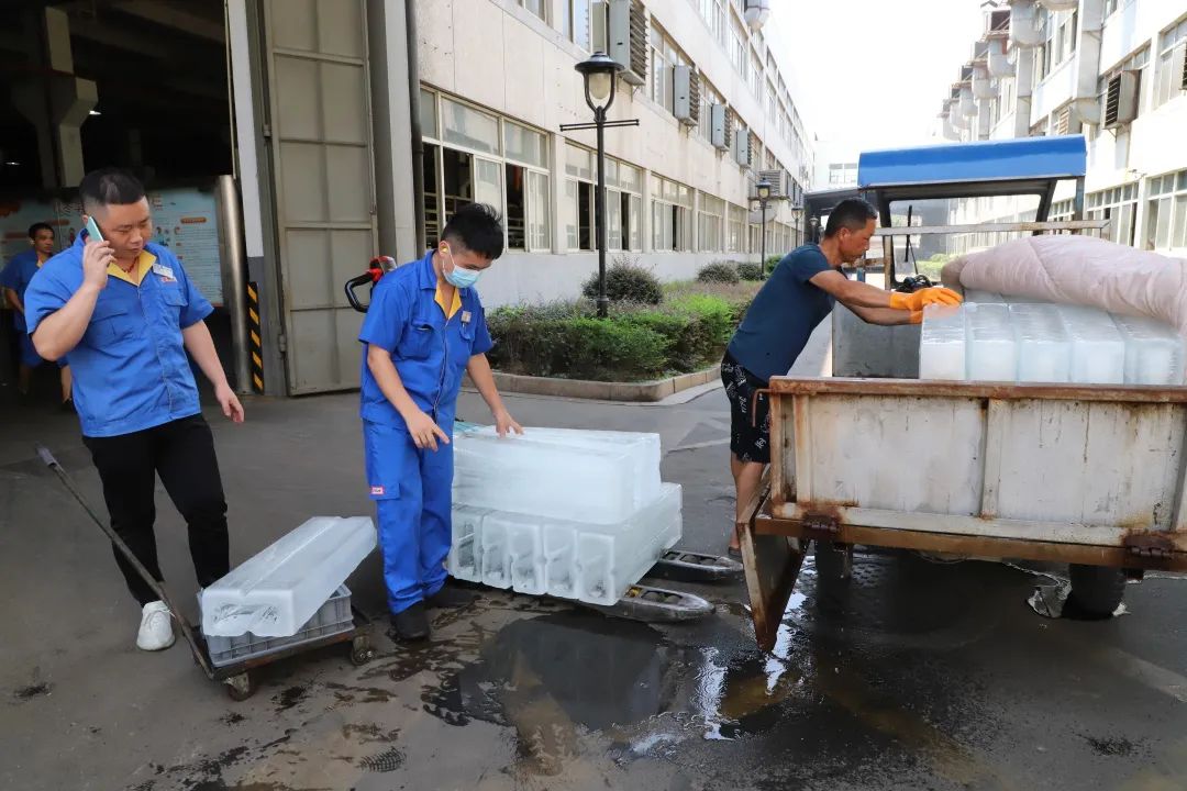 冰块被分配到车间的每条生产线上,冰块带来的丝丝凉意,让大家的心情也变得舒畅许多。