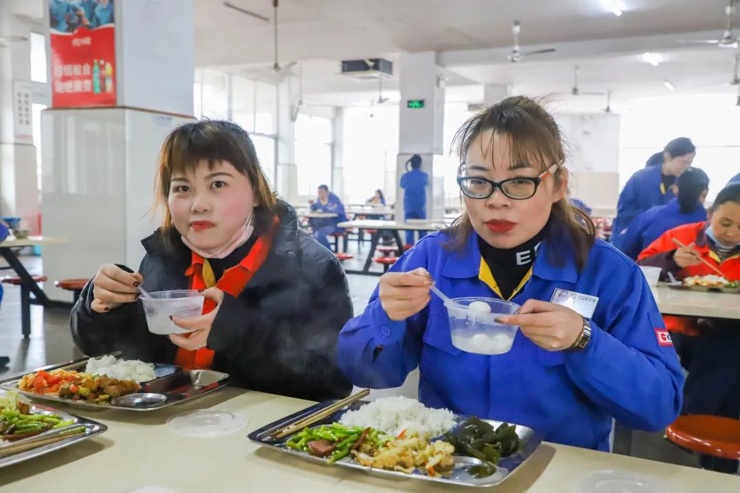 为员工们煮好了汤圆。